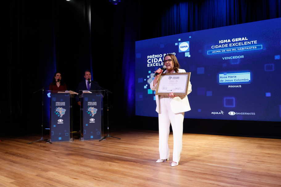 Pinhais foi a grande vencedora do prêmio Band Cidades Excelentes 2025, concedido na noite desta quarta-feira (22). O município recebeu o Prêmio IGMA Geral Cidade Excelente na categoria acima de 100 mil habitantes, pela pontuação obtida em todos os indicadores avaliados. Além disso, conquistou o primeiro lugar em dois pilares: Sustentabilidade e Desenvolvimento Econômico e Ordem Pública.