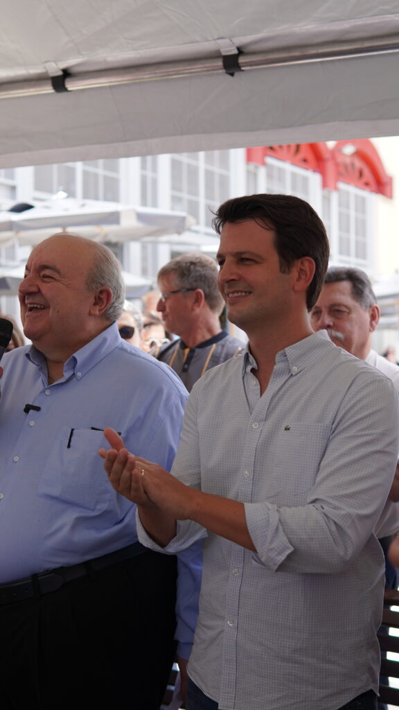 Dentro das comemorações dos 331 anos de Curitiba, o prefeito Rafael Greca e o vice-prefeito e secretário de Estado das Cidades, Eduardo Pimentel, inauguraram nesta sexta-feira (15/3) as obras de requalificação do entorno do Mercado Municipal, no Centro.